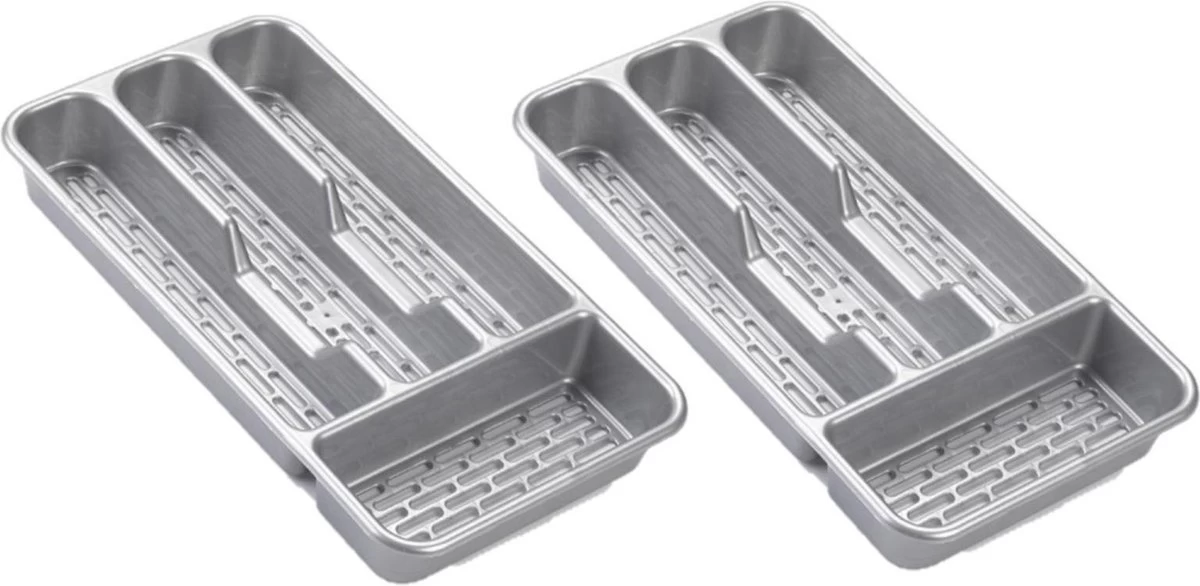 2x Stuks Bestekbakken/bestekhouders 4-vaks Grijs – 33 X 18 X 4 Cm – Keuken Opberg Accessoires
