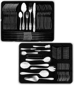 Ga je op jezelf wonen en is je uitzet nog niet compleet? Of is je huidige bestek aan vervanging toe? Met deze luxe en zeer uitgebreide bestekset ben je in 1 keer helemaal voorzien. Hij bestaat niet alleen uit bestek voor 12 personen, maar ook handig serveerbestek. Het is gemaakt van edelstaal, een hoge kwaliteit roestvrij staal. Hierdoor ben je ervan verzekerd dat je messen en vorken lang mooi blijven. Het bestek is vaatwasserbestendig dus je kan ze gemakkelijk schoonmaken in de vaatwasser.