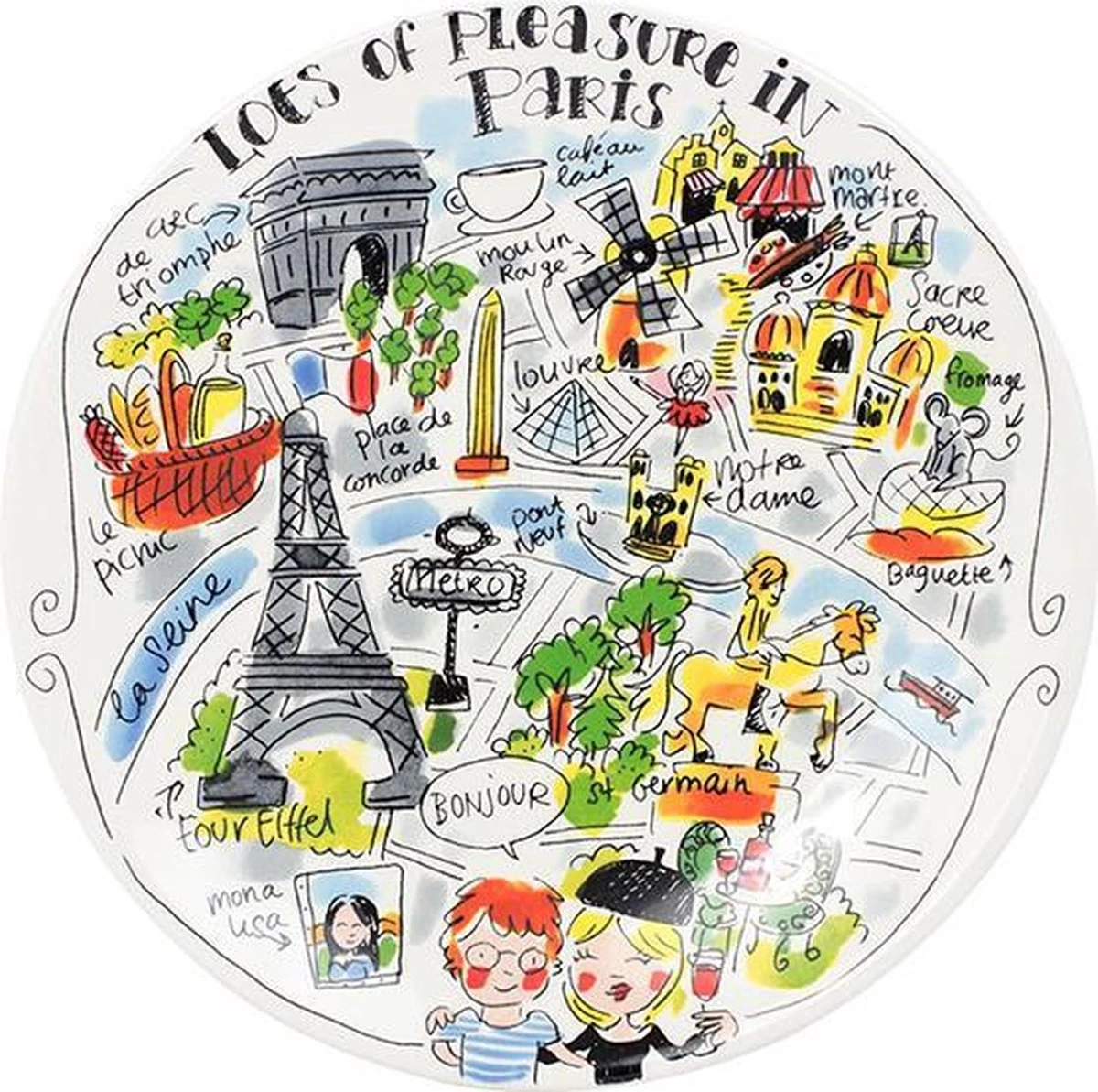 Parijs! Shopping, de Eiffeltoren en andere highlights uit deze mooie stad staan afgebeeld op dit vrolijke, kleurrijke Blond Amsterdam bord.