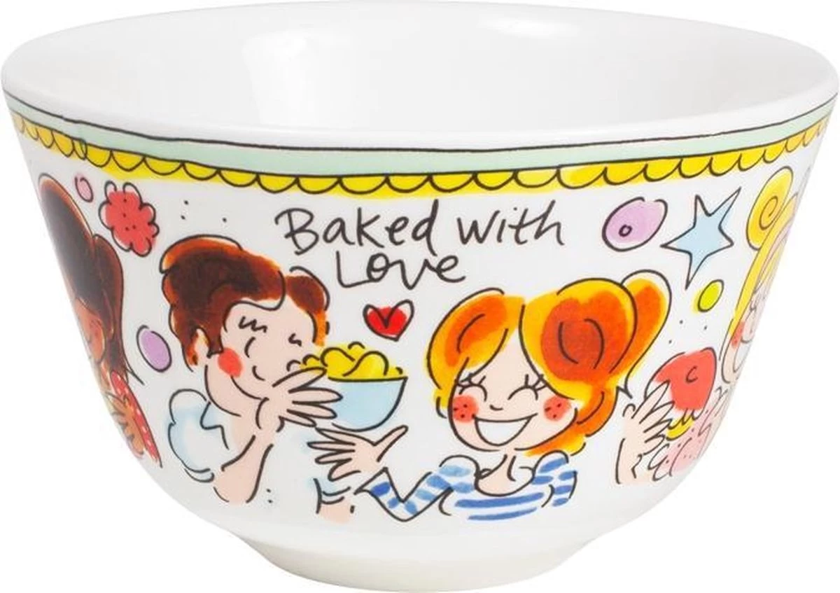 Deze vrolijke Blond Amsterdam kom is onderdeel van de welbekende Even Bijkletsen serie en heeft een diameter van 14 cm. De rand van de kom heeft een mint kleur, wat onderdeel is van deze vernieuwde lijn. De kom staat vol met herkenbare en vrolijke illustraties en aan de binnenkant staat een roze hart. De aardewerk kom is perfect om te gebruiken voor het ontbijt of om een lekkere kom soep of hapjes in te serveren. Ontdek de rest van het vrolijke Blond Amsterdam servies en alle andere kommen in onze webshop.