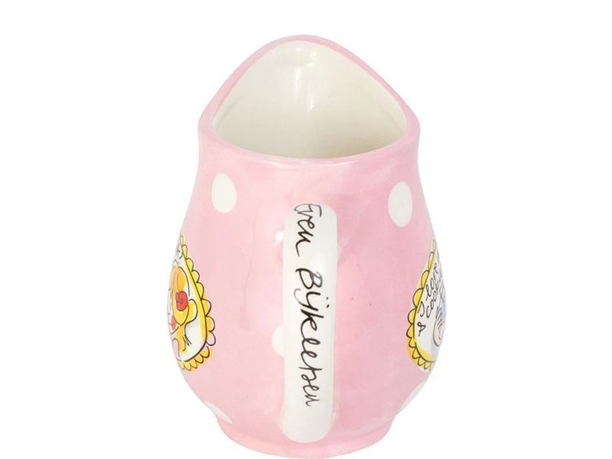 Dit vrolijke en kleurrijke melkkannetje maakt jouw tafel nog gezelliger! De opvallende en kleurrijke illustraties kenmerken de “Even bijkletsen’ lijn van de twee vriendinnen uit Amsterdam: een servieslijn met een knipoog. Het “Even bijkletsen’ servies, waar Femque en Janneke bekend mee zijn geworden, bestaat o.a. uit met o.a. kop en schotels, borden, petitfours en theepotten. Om de lijn compleet te maken is er nu ook een melkkan.
