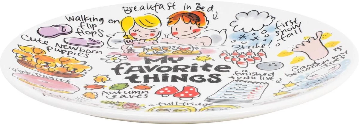 Lekkere Belgische chocolaatjes, een bos verse bloemen of lekker met een nieuw boek op de bank. Al onze favoriete dingen zijn afgebeeld op dit vrolijke Blond Amsterdam servies.
