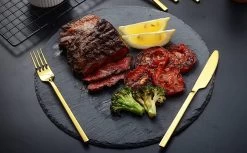 Ons zilverwerk is gemaakt van goede kwaliteit 18/10 roestvrij staal; U hoeft zich nooit zorgen te maken over de messen die moeite hebben om te snijden, de lepels buigen als je wegwaait, of de tanden van de vorken krullen uit vorm zoals anderen doen.