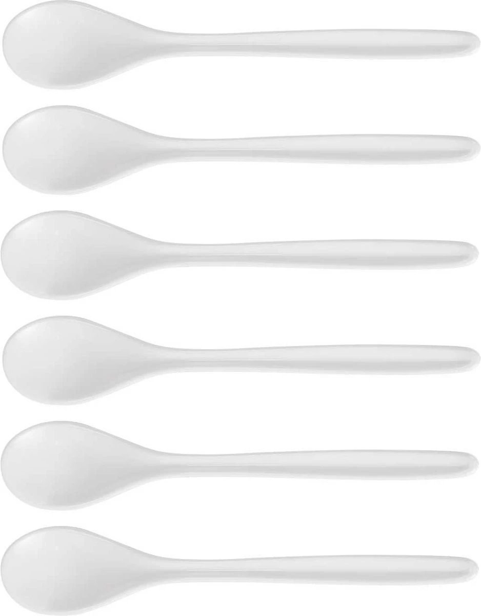 6x Koffie/theelepeltjes wit kunststof 13 cm. Setje theelepeltjes/koffielepeltjes, extra sterk/stevig en lichtgewicht.