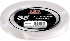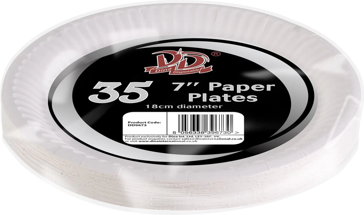 35x Witte wegwerp bordjes van karton rond. Formaat: 18 cm in diameter, 1 cm hoog. Materiaal: karton (170 grams).
