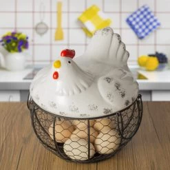 Eiermand Draadstaal Kip Wit Eierrek Eierhouder Eieren Bewaren Metaal Fruitschaal