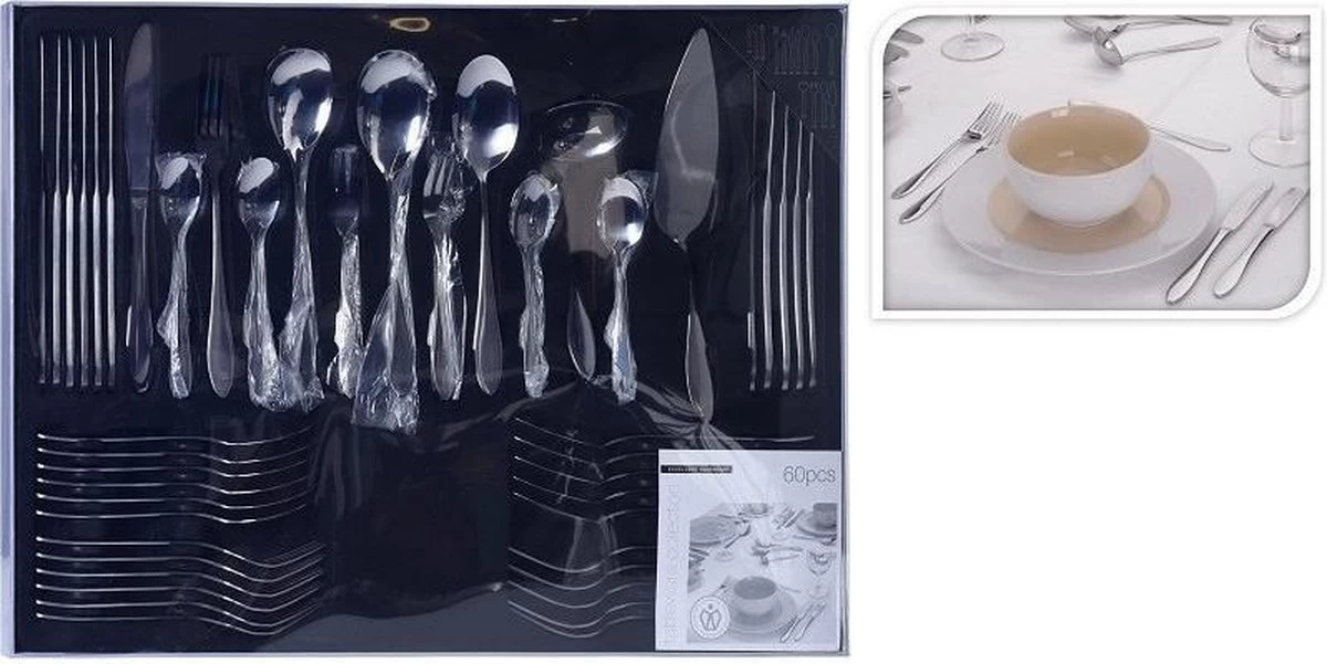 1x Excellent Houseware Bestekset 6 persoons – 60 delig – RVS