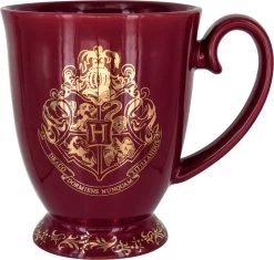 De Harry Potter mok is een geweldig cadeau voor elke Harry Potter fan. De dieprode, keramische mok heeft een gouden afbeelding van het wapen van Hogwart’s School of Witchcraft and Wizardry met de vier huismascottes: De leeuw van Gryffindor, de das van Hufflepuff, de adelaar van Ravenclaw en de slang van Slytherin.