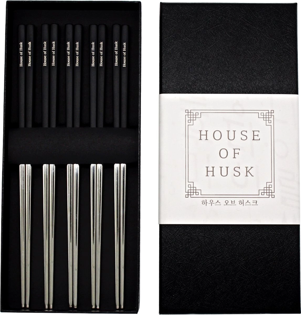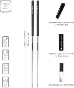 House of Husk herbruikbare roestvrijstalen metalen eetstokjes hebben ronde groeven aan de onderkant. Dit antislip-ontwerp helpt u voedsel efficiënter op te pakken. Ook het groevenontwerp aan de bovenkant voorkomt wegglijden bij het vasthouden. De eetstokjes zijn lichtgewicht waardoor ze gemakkelijk te gebruiken zijn en fijn in de hand liggen. Dit maakt onze eetstokjes perfect voor beginners.