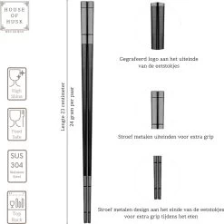 House of Husk herbruikbare roestvrijstalen metalen eetstokjes hebben ronde groeven aan de onderkant. Dit antislip-ontwerp helpt u voedsel efficiënter op te pakken. Ook het groevenontwerp aan de bovenkant voorkomt wegglijden bij het vasthouden. De eetstokjes zijn lichtgewicht waardoor ze gemakkelijk te gebruiken zijn en fijn in de hand liggen. Dit maakt onze eetstokjes perfect voor beginners.