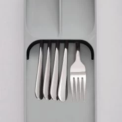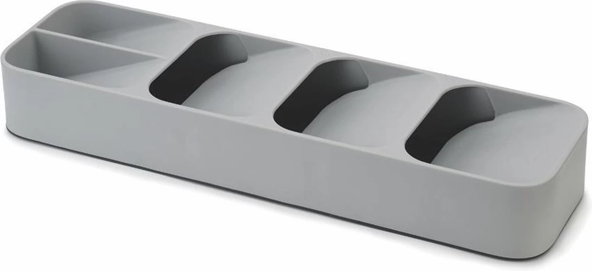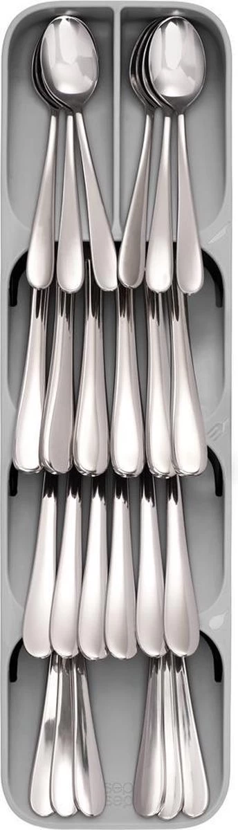 Met deze bestekbak van het merk Joseph Joseph kun je de ruimte in je keukenlade optimaal benutten – ideaal voor kleine keukens! De unieke constructie van deze keukenlade organizer creëert ruimte voor messen, vorken en lepels die in conventionele bestekdozen minstens twee keer zoveel ruimte nodig hebben.