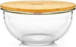 - Allrounder: veelzijdige glazen schaal met bamboe deksel