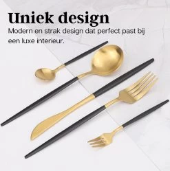 LuZana – Bestek Set Goud – 30-delig – Bestekset 6 Persoons – Goud/zwart – Bestek – Borden – Bestekset Zwart