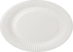100x Kartonnen bordjes wit 18 cm. Deze witte wegwerp bordjes zijn gemaakt van karton en zitten verpakt per 100 stuks. De diameter van de bordjes is 18 cm. Kartonnen eetbordjes voor een verjaardag, feestje of BBQ.