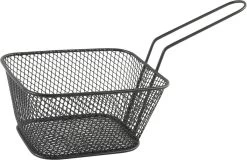 6x stuks zwarte patat/snack serveermandjes/frietmandjes 14 cm. Leuk serveermandjes voor patat, snacks of gebakken aardappeltjes, in de vorm van mini frituurmandjes. Formaat: ongeveer 14 x 11 x 7 cm. Materiaal: RVS. U ontvangt 6 stuks,Tafeldecoratie/serveren snackhouders/snackmandjes/patatmandjes/frituurmandjes.