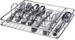 Een mooie, eigentijdse bestekset uitgevoerd in robuust roestvrij staal. Deze complete set bevat vorken, messen, lepels en diverse extra stukken voor 8 personen. Deze set is een aanwinst voor iedere eettafel.