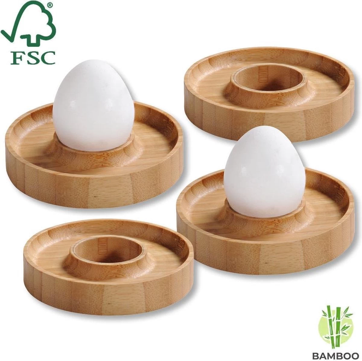 Eierdopjes set van 4 Stuks FSCĀ® Bamboe hout Met praktische rand voor neerleggen van de eierschaal.