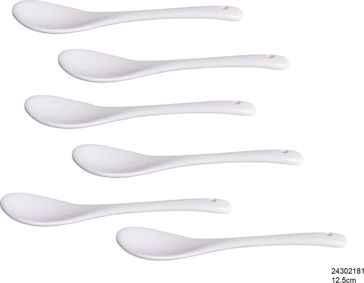 Merkloos Lepels | Wit | Porselein | 12,5 Cm | 6 Stuks