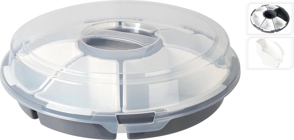 Merkloos Serveerschaal Met Vakverdeling En Deksel Kunststof Ø33xh9cm Grijs
