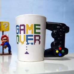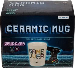 Game Over controller mok van Out of the Blue. Witte mok met de opdruk Game Over een een oor in de vorm van een controller. Originele mok om je wakker te houden tijdens het gamen. Een leuk cadeau voor gamers! Afmeting: 14 x 9 centimeter.