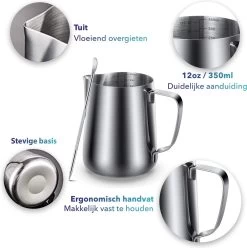 Wil je mooi melkschuim maken voor op je koffie? Dan mag Qualita melkkannetje met een inhoud van 350ML niet ontbreken. Om goed melkschuim te kunnen maken kun je het best een melkkannetje gebruiken van RVS, omdat dit de warmte goed geleid.Op deze manier voel je goed aan wat de temperatuur van je melkschuim is, en voorkomje dat het te heet wordt.