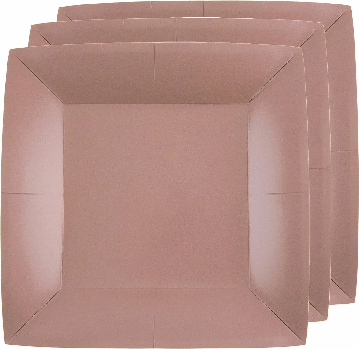 20x Stuks Santex feest ontbijt/gebak bordjes papier/karton vierkant rose goud. Wegwerp party bordjes van stevig karton, om ieder feestje mee compleet te maken. Afmetingen: ca. 18×18 cm. Kleine feestbordjes.