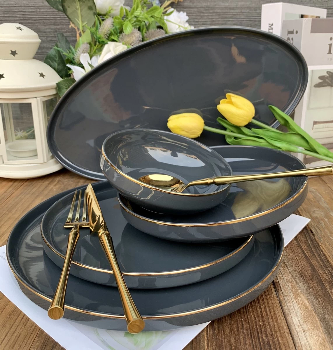 Geschikt voor 6 personen. Een complete serviesset inclusief dinerborden, diepe borden, soepkommen, gebaksborden en een saladeschaal. Alle borden en schalen zijn gemaakt van hoogwaardig beenderporselein, beter bekend als New Fine Bone Porselein. Dit is een luxe porseleinsoort van hoge kwaliteit, gemaakt volgens een speciaal procedé.