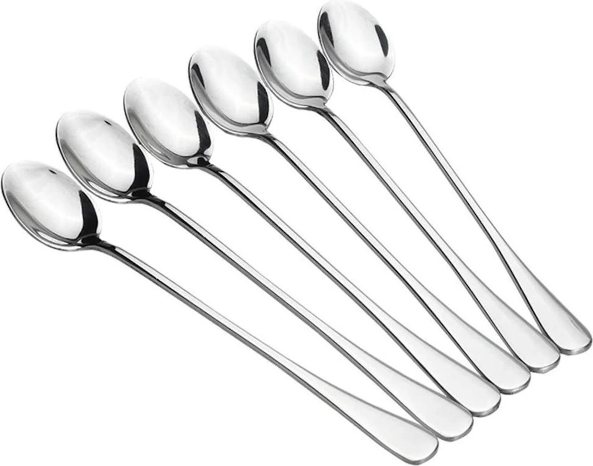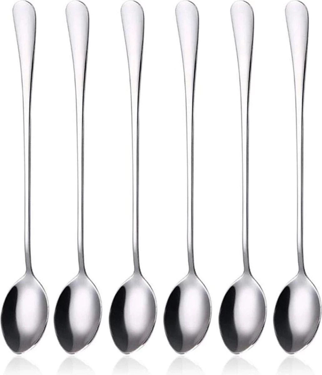 Trendfield Lange Lepels Voor Dessert, Latte Macchiato, Yoghurt Of Cocktail – Dessertlepels RVS – Zilver – 6 Stuks